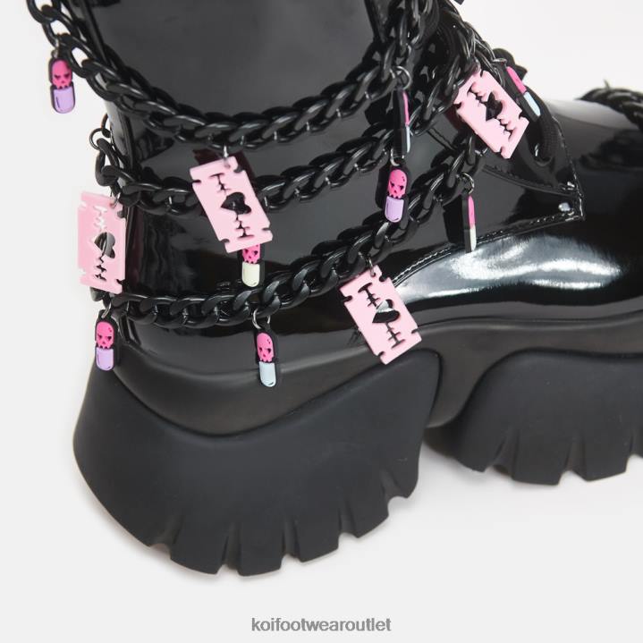 Get Your Dark & Cute Fix! These Yami Kawaii ankle boots are the perfect blend of cute and edgy, with their darker details and playful pills and razor blade accents. The black patent and black chain add a touch of glam, while the lace-up design and platform design make these boots both stylish and comfortable. Whether you're rockin' an alternative look or just adding some edge to your everyday style, the Pills & Silent Potions Vilun Boots are the perfect pick-me-up. So, take a walk on the wild side and add these boots to your wardrobe today!