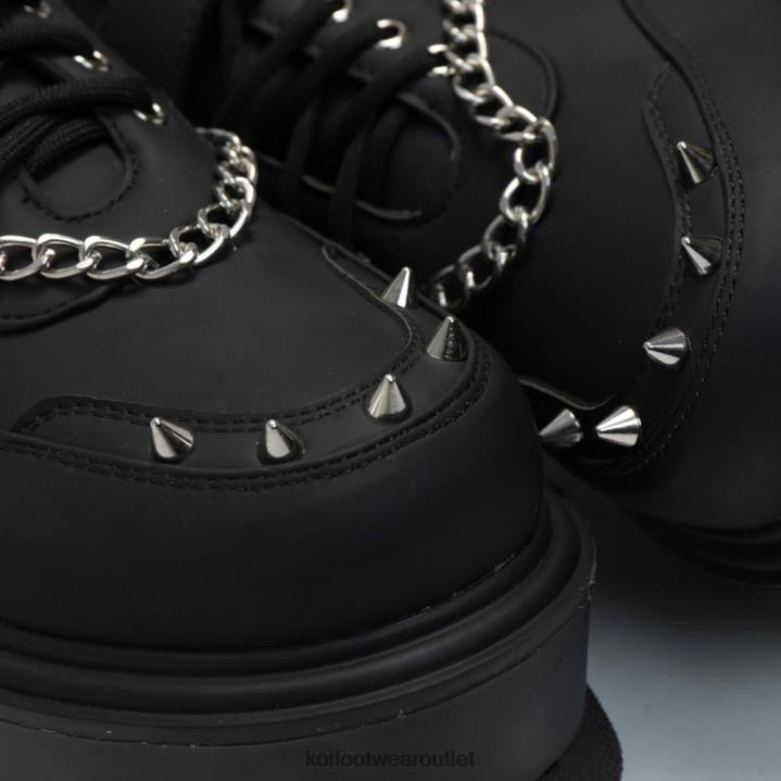 You know Koi Footwear will never fail you when it comes down to the details. Retrogade rebel is in all-black vegan leather with a mass spectrum of extras: studded, with a chain, velcro strap, ankle strap and lace up features - and of course, a 2-inch platform. Let's celebrate you in your truest form in these shoes for men - embrace how you truly want to live and rebel against what you already know.