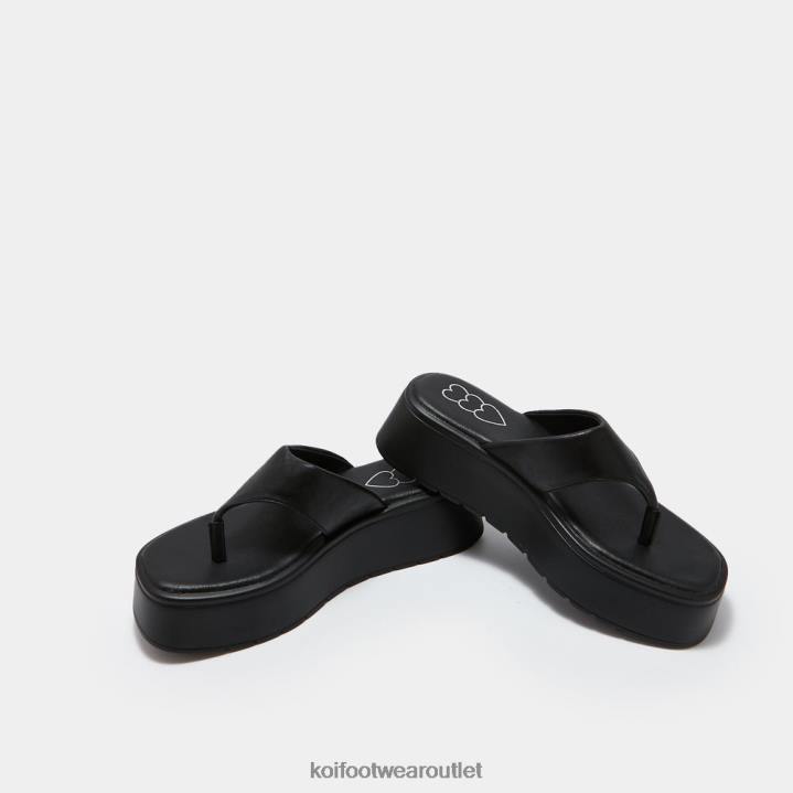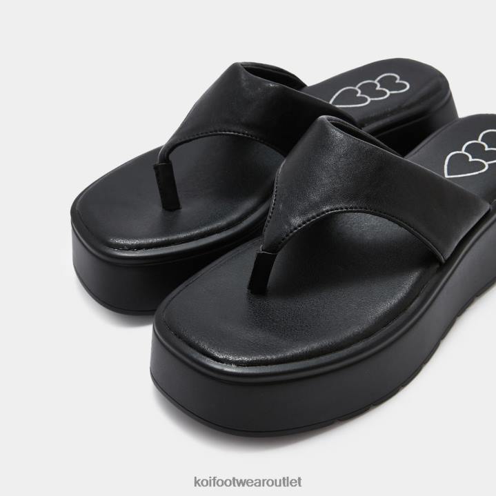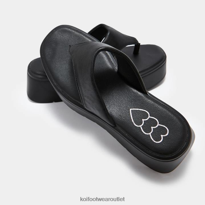 Women KOI footwear Black Alora Chunky Thong Sliders TDVL141